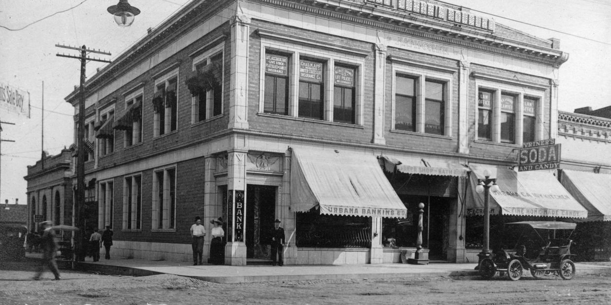 Nat Cohen’s business office was located on the first floor with a separate entrance facing Race Street. The cigar factory was on the second floor, along with other business offices including the United States Insurance Company and a dentist’s office. The Urbana Banking Company, the Parlor Barber Shop, and the Urbana Candy Company occupied the commercial bays on the first floor facing Main street. The cigar factory remained in operation until Nat’s retirement in 1913. Through the years the Cohen Building was home to a wide range of businesses including retail shops, law firms, doctor’s offices, and the Embassy tavern.
